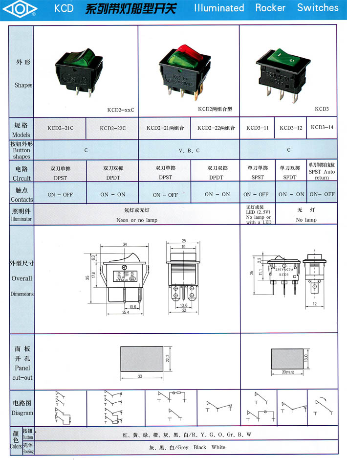 • KCD2/3系列帶燈船型開關 產品型號:KCD系列帶燈船型開關
