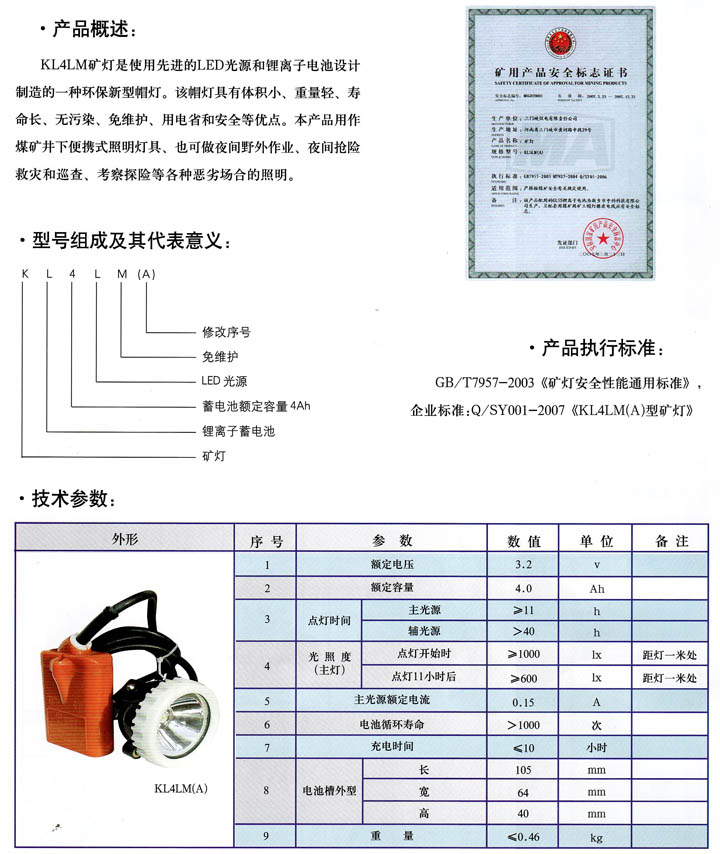 • KL4ML(A)型礦燈 產品型號:KL4ML(A)型礦燈