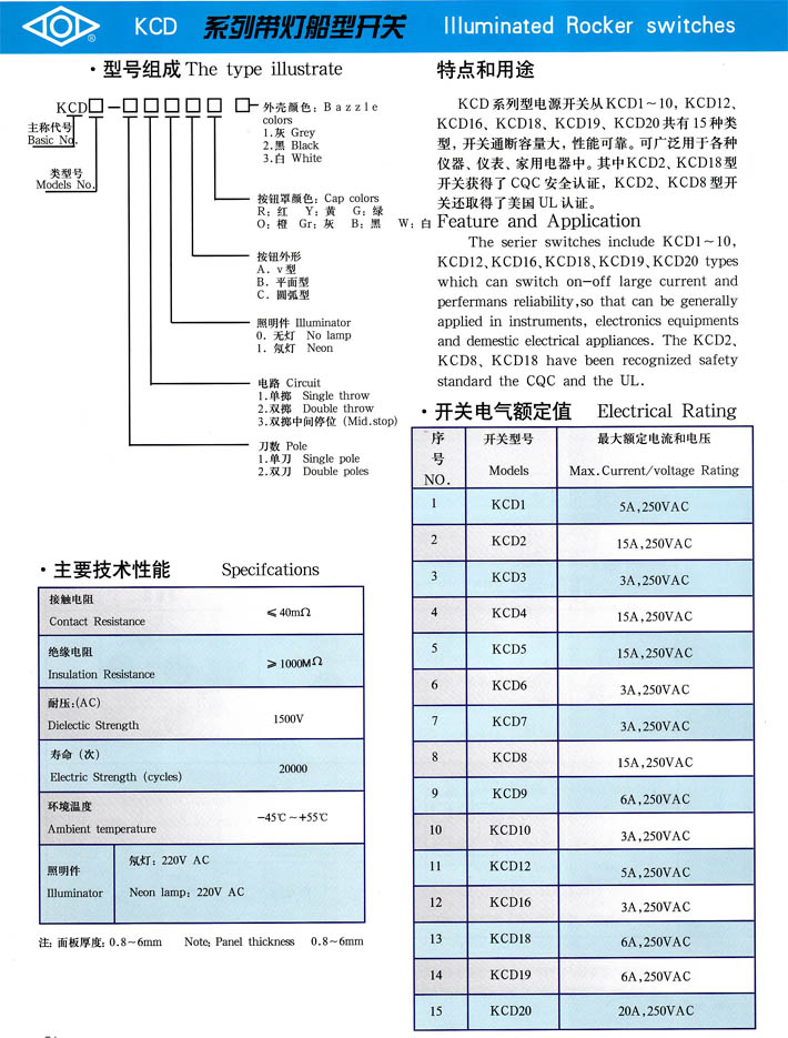 • KCD系列帶燈船型開關(guān)型號說明 產(chǎn)品型號:KCD系列帶燈船型開關(guān)